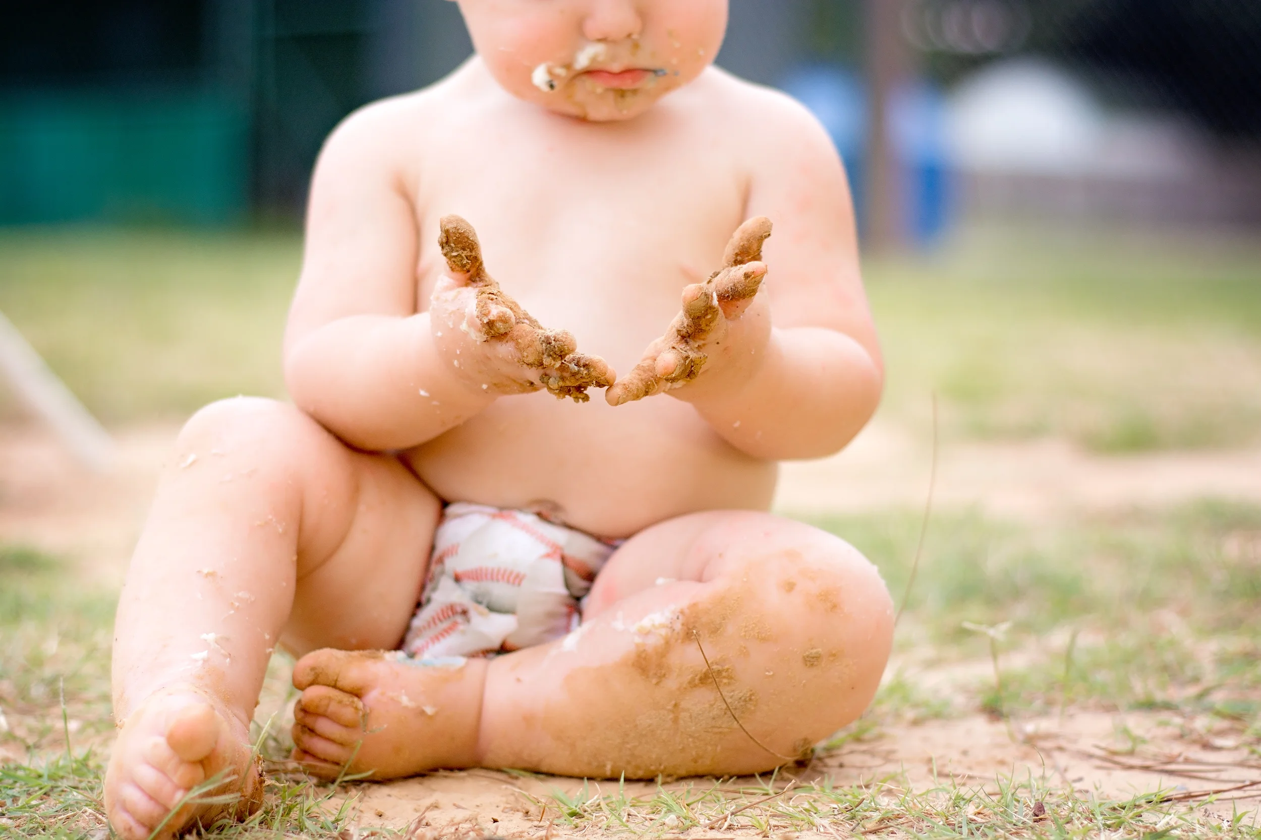 After a good ole time on the ranch, we headed up to the ball field to smash a cake!! LOL I can't get over this ~ You never know what to do expect when a child gets handed a pile of sugary sweetness for the first time... Love? Hatred? Curiosity? I've seen it all LOL Here, you get to take a peek into the fun we had! A big thanks to Ashley Morgan with Lydia's Lovies for his Tie and Diaper Cover, and Lisa Park with Lagniappe Confections for this awesome cake!!